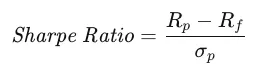 퀀트투자에서도 위험도는 중요한 지표입니다. 위험도를 측정하는 지표들 중에서 가장 유명한 것이 바로 샤프 비율인데요. 노벨 경제학상 수상자인 William Sharpe 교수가 고안한 이 척도는 투자자가 얼만큼의 위험도를 감수하고 수익을 거두었는지 계산할 때 사용됩니다. 샤프 비율을 계산하는 공식은 다음과 같은데요.
