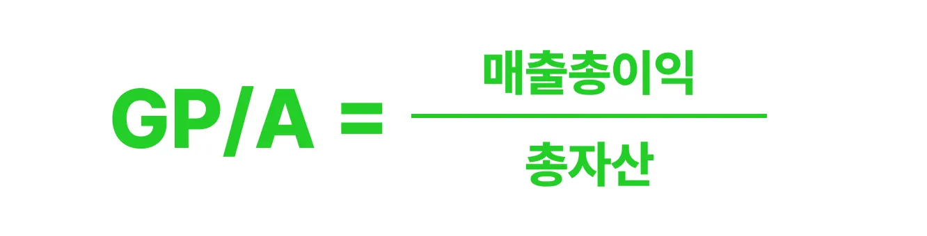 GPoA 또는 GP/A 란 Gross Profit / Asset의 줄임말로, 매출총이익을 자산총계로 나눈 비율을 뜻합니다.